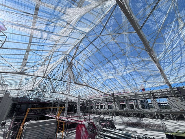 AHM Filets est intervenu sur une surface de 1500m² afin de sécuriser le chantier et obtenir une sécurité totale en réduisant la hauteur de chute au minimum.
