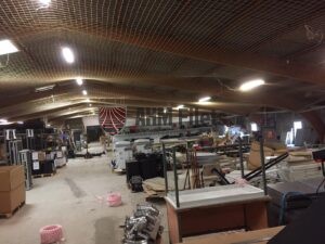 Nous découvrons ici les lieux avant travaux, bâtiment encombrés très peu de place, pour une pose de FILETS DE SECURITE ET POLYANE.