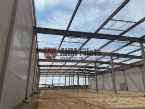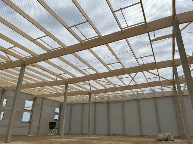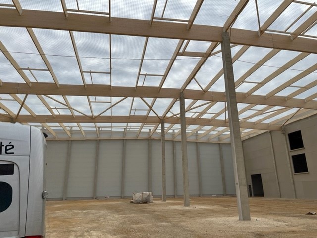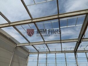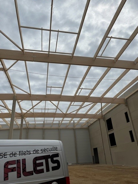 Ahm filets est intervenu sur une plateforme sur plus de 6000m² en posant les filets travées par travées sur une charpente bois ce qui nécessite beaucoup de technique et de professionnalismes, avec sécurité en posant à la nacelle à plus de 10m de haut.