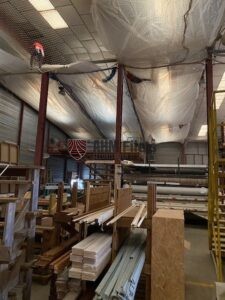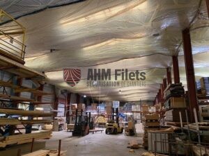 C’est dans un bâtiment à rénover que nous retrouvons les équipes expérimentées de l’entreprise AHM FILETS.Pour une mise en place de filets de sous face anti chute d’homme et une double couche de polyane à l’intérieur.Nous assurons la sécurité des équipes de désamiantage en milieu encombrés.Nos poseurs ont mis tout leur savoir faire en place que ce soit sur la partie sécuritaire que sur la partie esthétique.