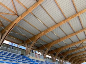 Avec la présence du gradin, nos équipes de poseurs ont dû alliés savoir faire et technique en utilisant les moyens de levages adéquate à la réalisation de la première phase de ce chantier.