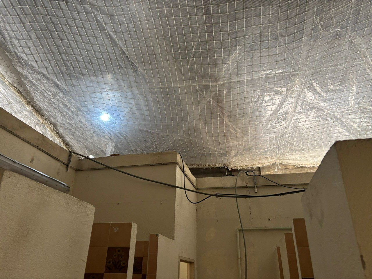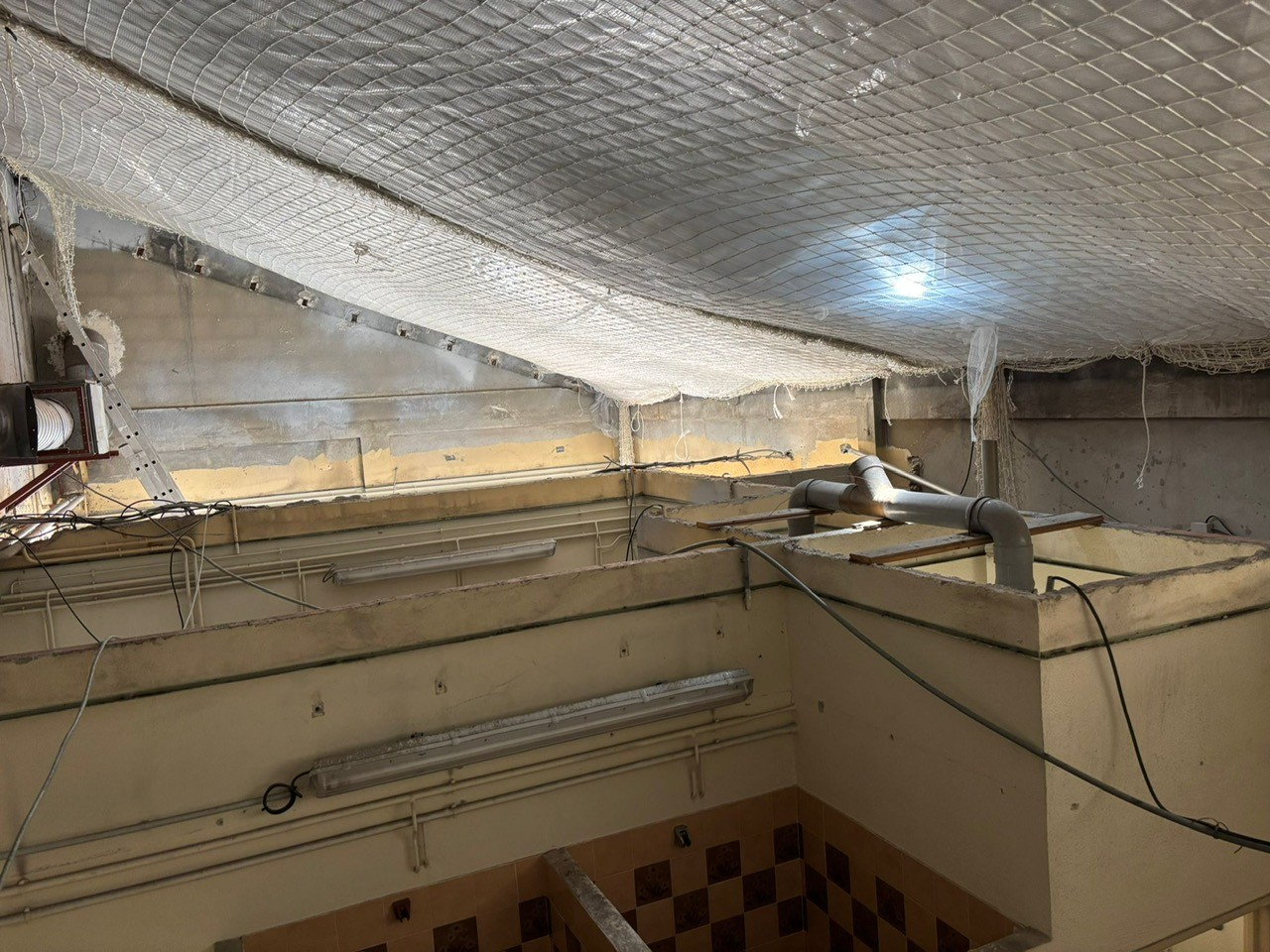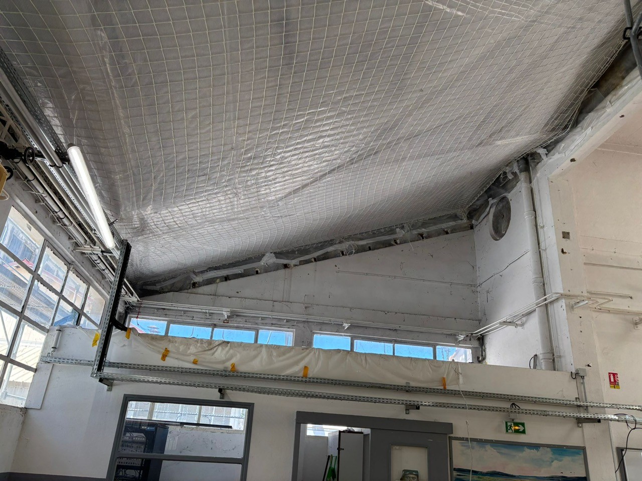 Dans le cadre de la réfection de la toiture, nous avons procédé à la pose d’un filet anti-chute d’homme, associé à la mise en place d’un polyane de protection, afin de garantir la sécurité des intervenants et de protéger les installations situées en dessous.