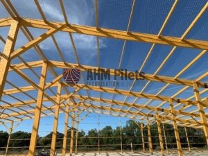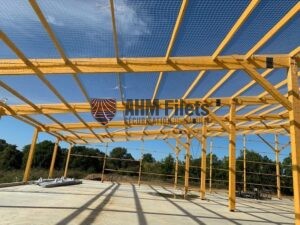 Ahm filets est intervenu sur une magnifique charpente bois en posant les filets travée par travée ce qui nécessite beaucoup de technique et de professionnalisme mais avec sécurité en posant à la nacelle à 10M de haut. Nos poseurs de filets de sécurité ont mis tout leur savoir-faire et leurs expériences pour réaliser une pose parfaite.
