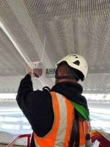 C’est avec une totale adaptation des lieux et des contraintes de temps que notre société a su répondre aux différents besoins de mise en place de pare gravât (anti chute d’objet) en sous face ainsi qu’une pose de filets sur mesure conçu uniquement pour ce chantier, afin de laisser une rendu visuel parfait.